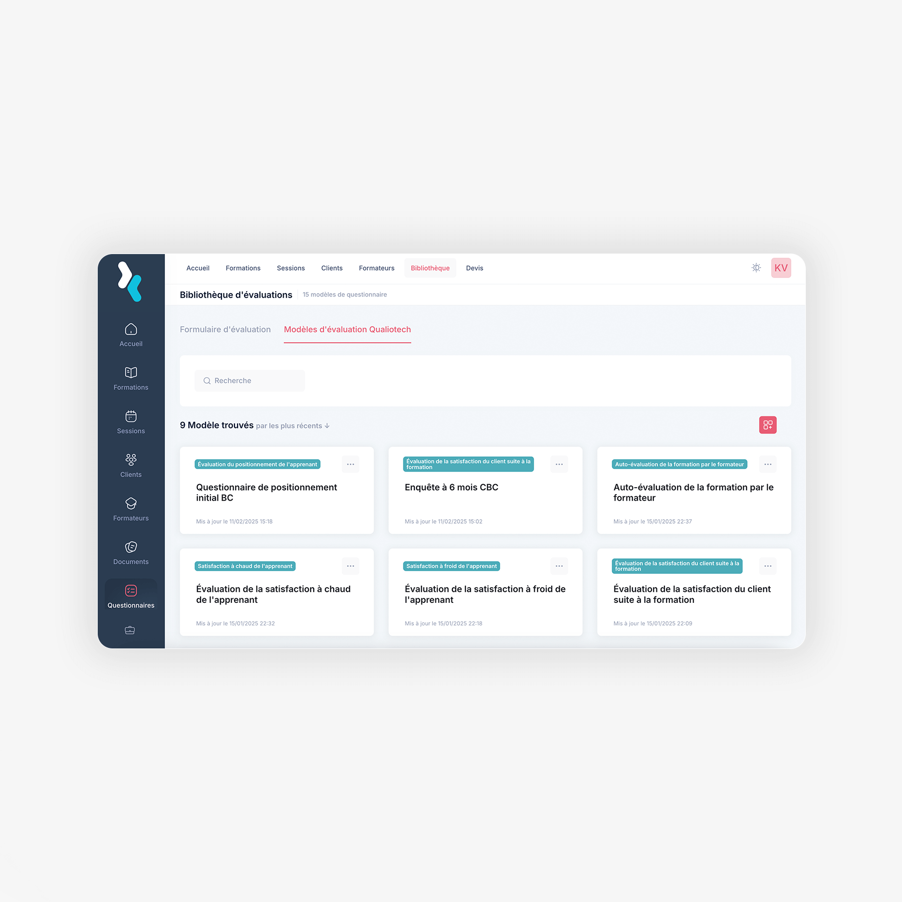 Utilisez des modèles prêts à l’emploi pour les apprenants, clients et formateurs. Mesurez la qualité et la satisfaction simplement.
