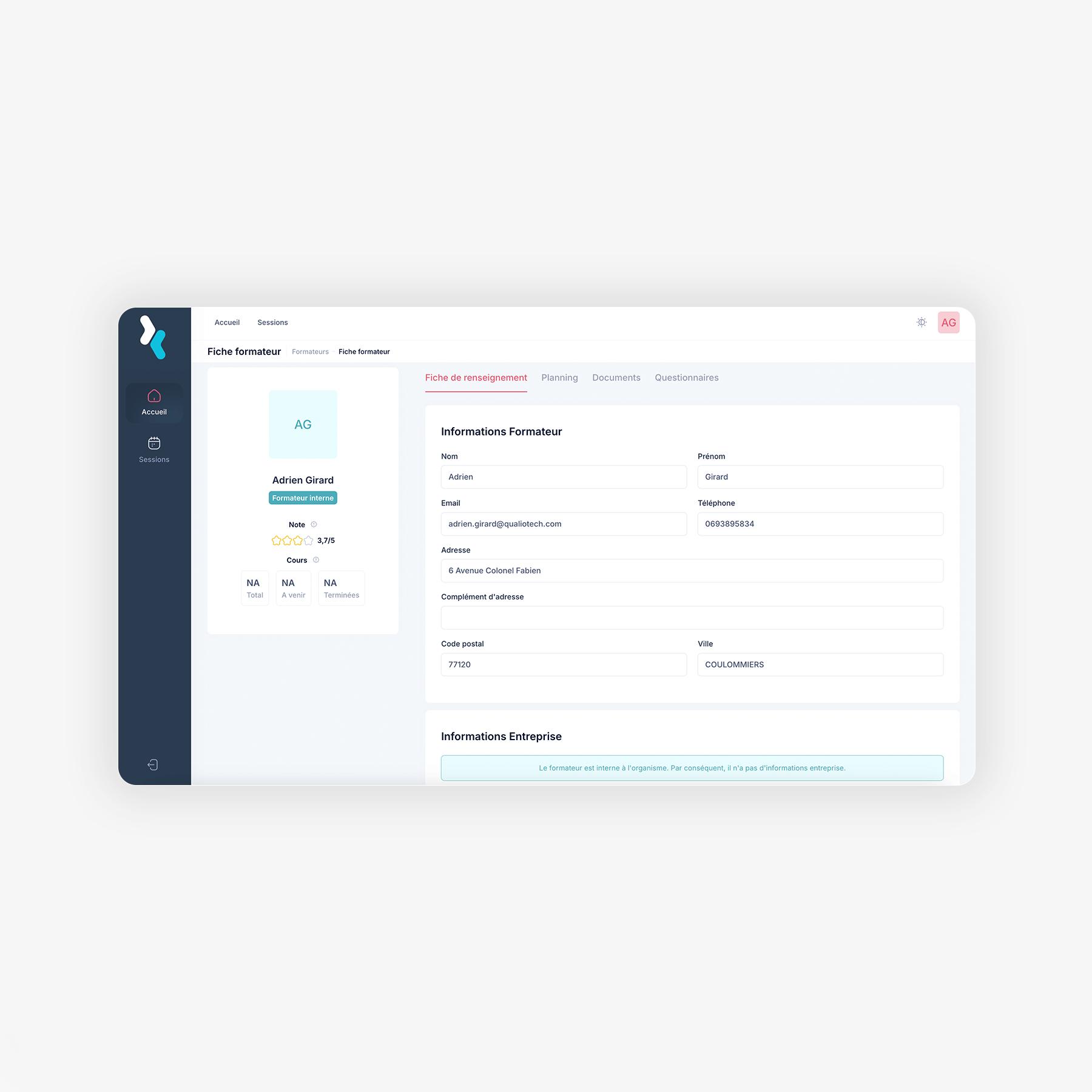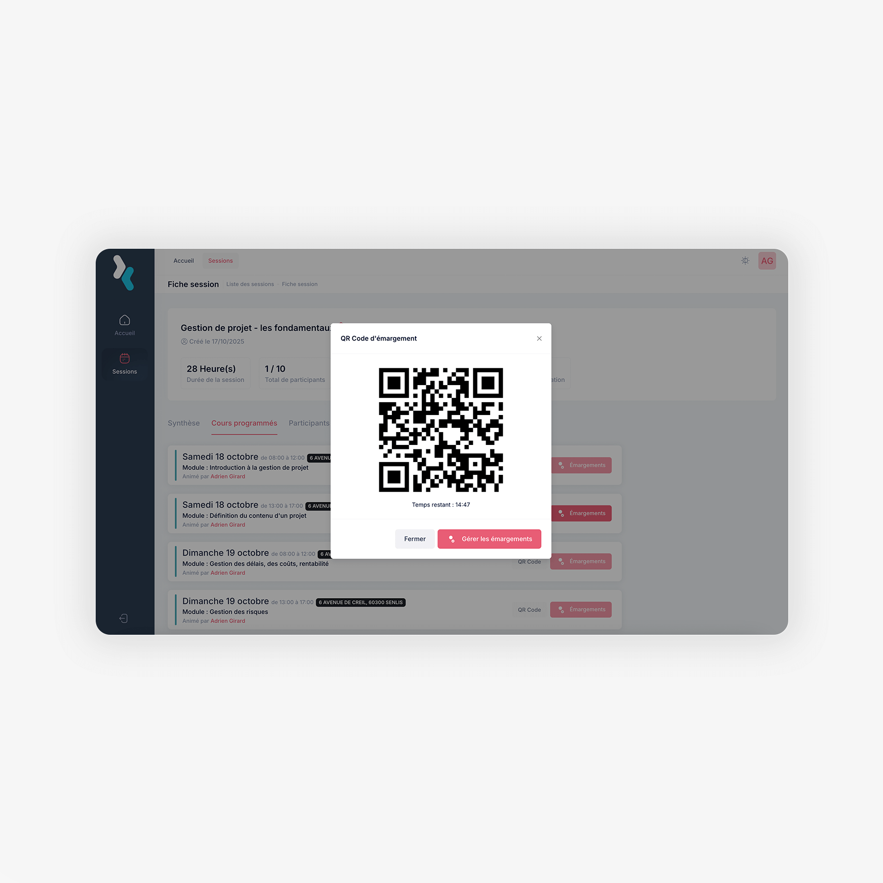 Chaque formateur dispose d’un espace sécurisé pour gérer ses sessions, accéder à ses documents et suivre ses apprenants en toute autonomie.