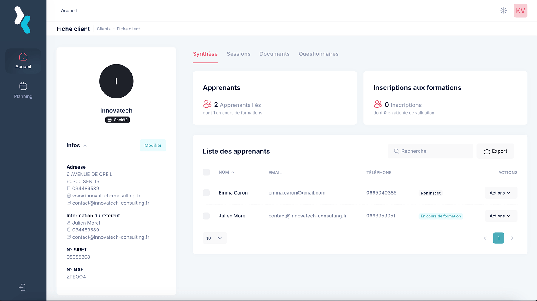 Cet espace améliore la transparence et la réactivité entre l’organisme et ses partenaires, tout en assurant une traçabilité complète des échanges. Une fonctionnalité essentielle pour renforcer la confiance et répondre aux exigences Qualiopi.