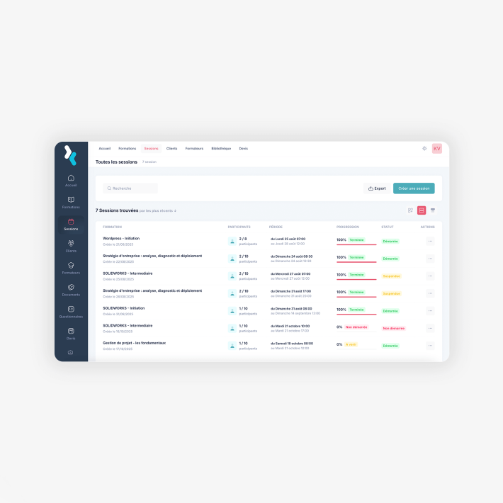 Chaque formateur dispose d’un espace sécurisé pour gérer ses sessions, accéder à ses documents et suivre ses apprenants en toute autonomie.